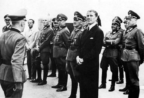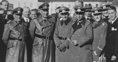 18 Una de las escasas fotografías donde aparece Wernher von Braun vistiendo el uniforme de las SS, detrás de Heinrich Himmler, durante una visita de éste a Peenemünde. Segundo por la izquierda, junto a Himmler, Walter Dornberger.